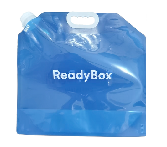 Alle varianter af ReadyBox kommer med vanddunk. Tilkøb evt. ekstra vanddunke i forhold til antal personer i husstanden. Beregn 3 liter vand pr. person pr. dag.