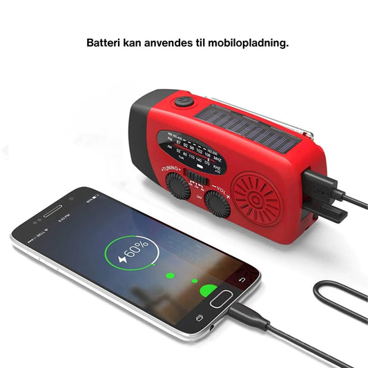Nødradio m. håndsving, solceller, lommelygte og powerbank - FM/AM